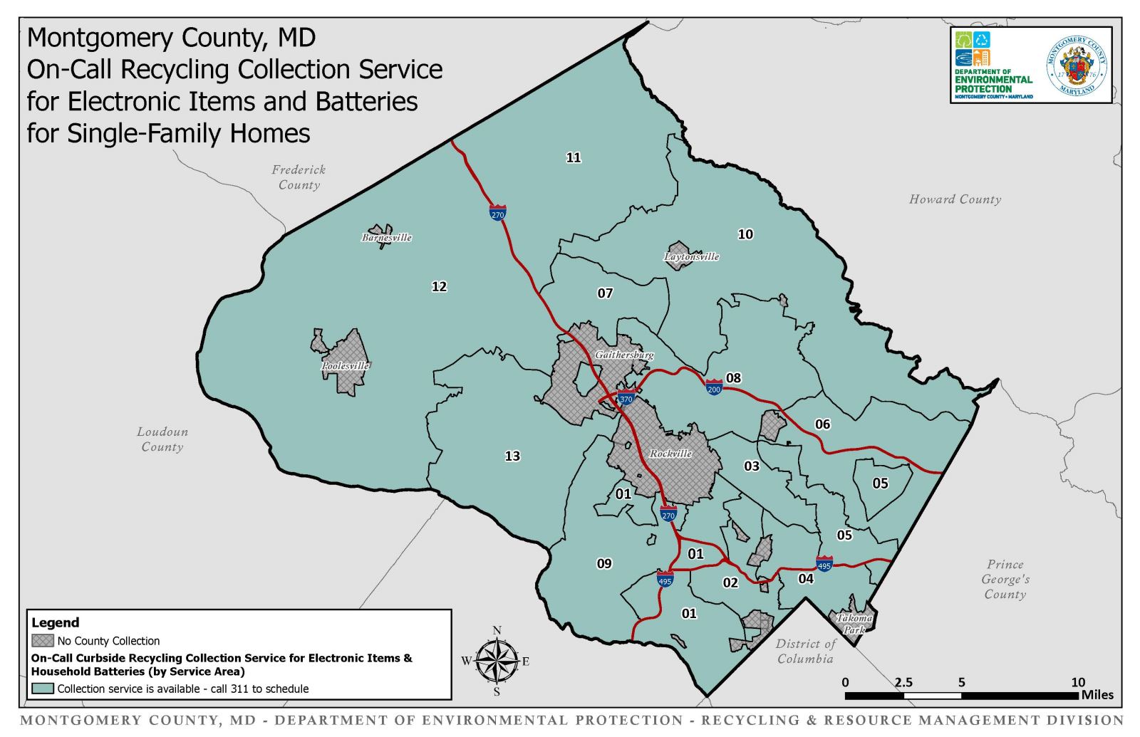 Montgomery County has expanded its single-family residential curbside recycling program to include the on-call recycling collection of electronic items and household alkaline and rechargeable batteries. This service is now available to all County residents who receive County-provided recycling collection services. Please call MC311 to schedule an on-call recycling of electronic items and batteries. Residents are reminded that electronics and batteries should never be placed in curbside recycling bins or mixed with regular trash, as doing so could pose a fire risk or interfere with safe processing.