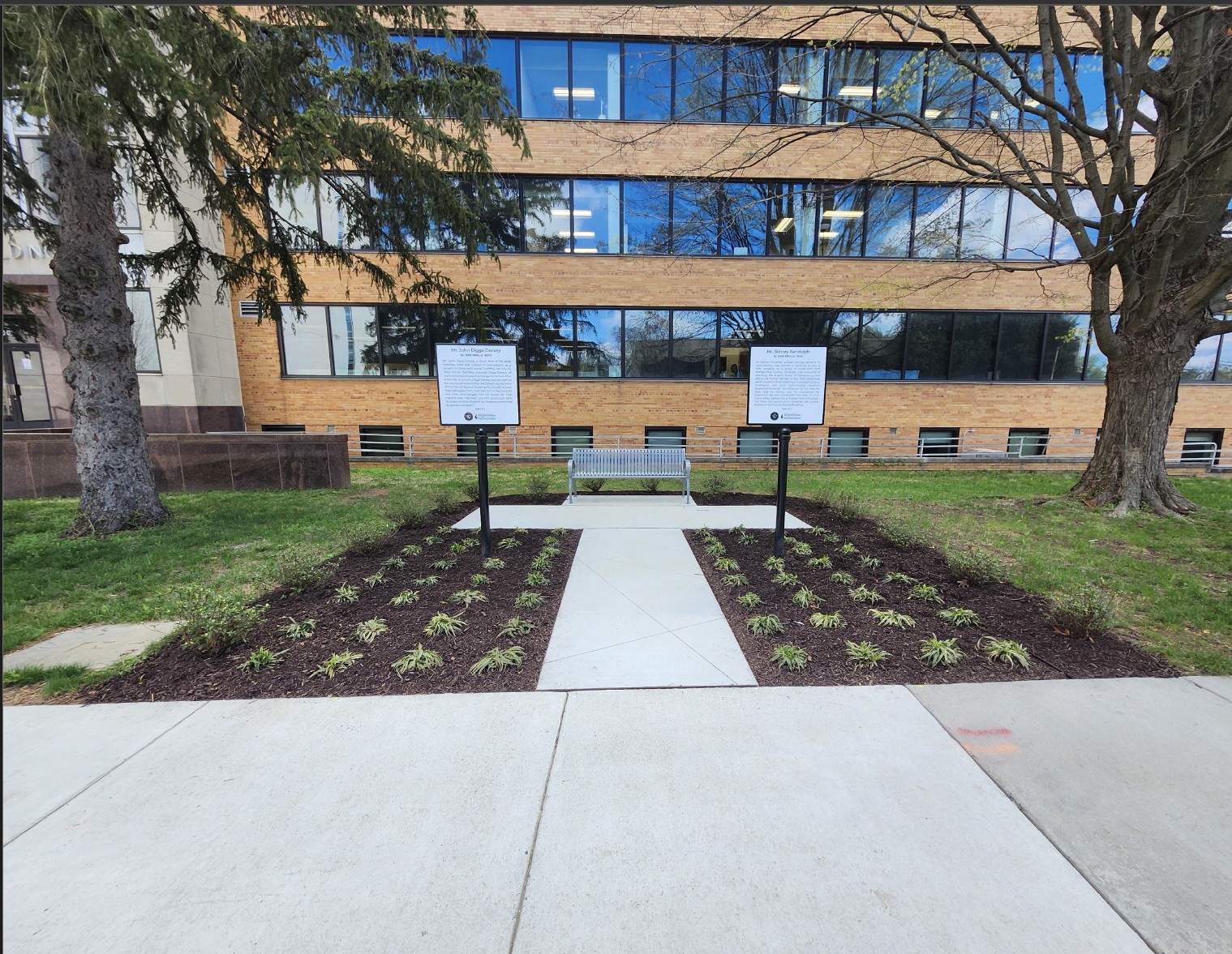 The existing memorial upgraded with planting, access pathway and bench. Upgrades completed April 2025.