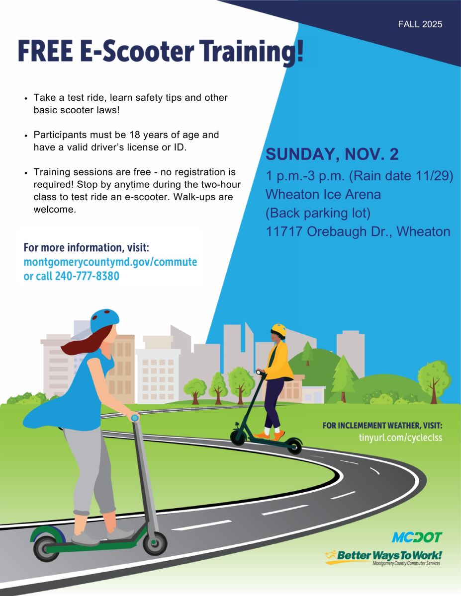 To encourage more biking, scootering and walking, Montgomery County has initiated an effort to improve the facilities available for these active forms of transportation. New roadway markings are part of that. MCDOT initiated a campaign called "Look Out!" to provide more information on how to safely navigate the new infrastructure and markings being provided, whether you are a pedestrian, a cyclist or scooter rider, or driving an auto.