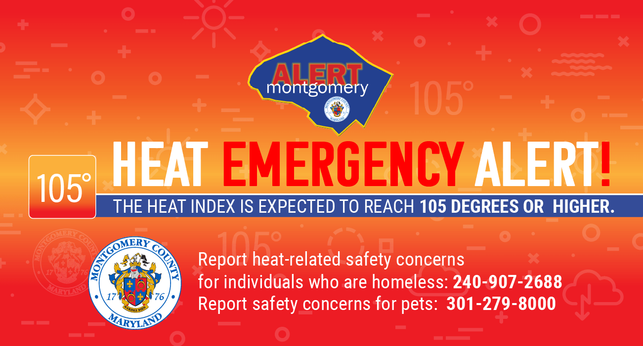 Montgomery County’s Office of Animal Services reminds community members to be especially careful with all pets during times of increased heat. Animals that are outdoors must have access to shade, shelter, and plenty of fresh water. When possible, it is advised to bring typically outdoor pets inside during periods of extreme heat.