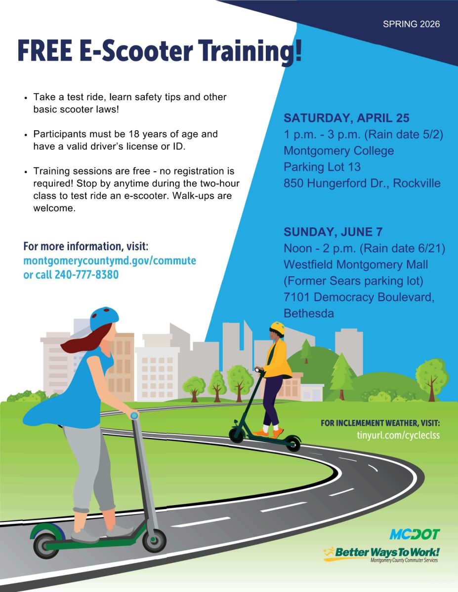 Registration is not required for the Adult e-scooter classes; walk-ups are welcome. Thank you!!