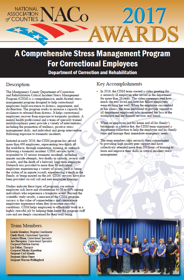 - 2017 NACO Award | Comprehensive Stress Management Program For Correctional Employees