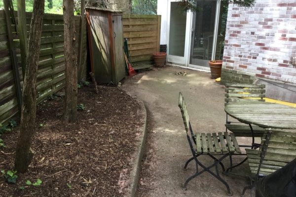 This before and after picture shows how a resident can use the RainScapes Rewards Rebate program to replace pavement with natural surfaces, such as rain gardens, conservation landscaping, or lawn.