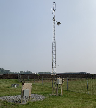 The weather station is located at the Montgomery County Composting Facility. This station provides hourly weather records for the Compost Facility and the Resource Recovery Facility. The station consists of a 30-foot aluminum tower with the following equipment installed on the tower: