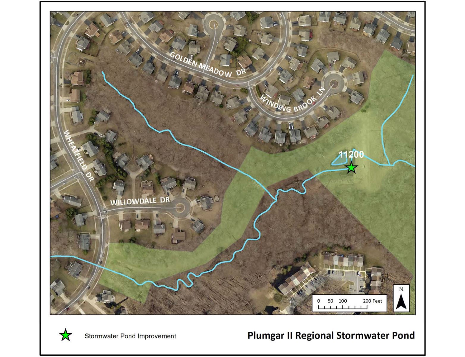 Plumgar II Stormwater Pond is located on Montgomery County Parks property in the Great Seneca Creek Stream Valley Park. The pond receives stormwater from 85 acres including the Seneca Park North community and associated impervious area such as roads, parking areas and sidewalks. This pond was accepted into the Countys stormwater facility maintenance program in 2005. The Montgomery County Department of Environmental Protection (DEP) is responsible for structural maintenance and MC Parks is responsible for non-structural maintenance such as mowing and trash removal.
