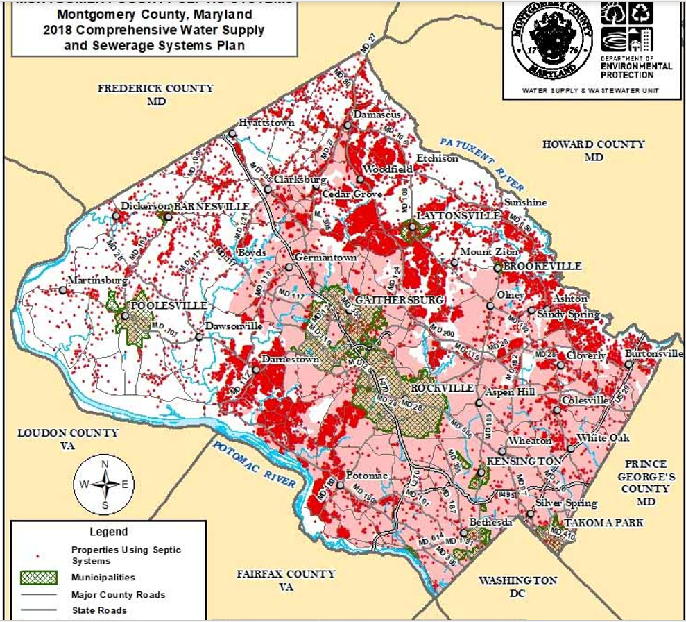Montgomery County Public Sewer Service Areas and Septic System Locations