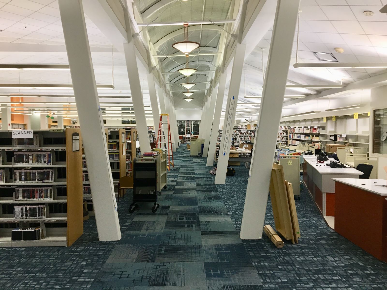 Interior improvements have been done to improve both the functions within the library and to enhance the appearance within the library. Those interior improvements include, among other items : replacement of all the flooring surfaces within the main library areas and the workroom and offices, total renovation of all public restroom to make them ADA compliant and to upgrade the fixtures, painting of all the walls of the main library and workroom, rearrangement of shelving and seating within the library, addition of new furniture within the library inclusive of the quiet room and the workroom areas, addition of new workstations in the workroom, installation of a new motorized partition in the main meeting room, total upgrade of all the lighting to introduce more efficient and brighter LED lamps, additional of new motorized shades to the windows in the meeting room and entrance lounge, replacement and addition of new service desks and self-checkout desks at the entrance to the main library.