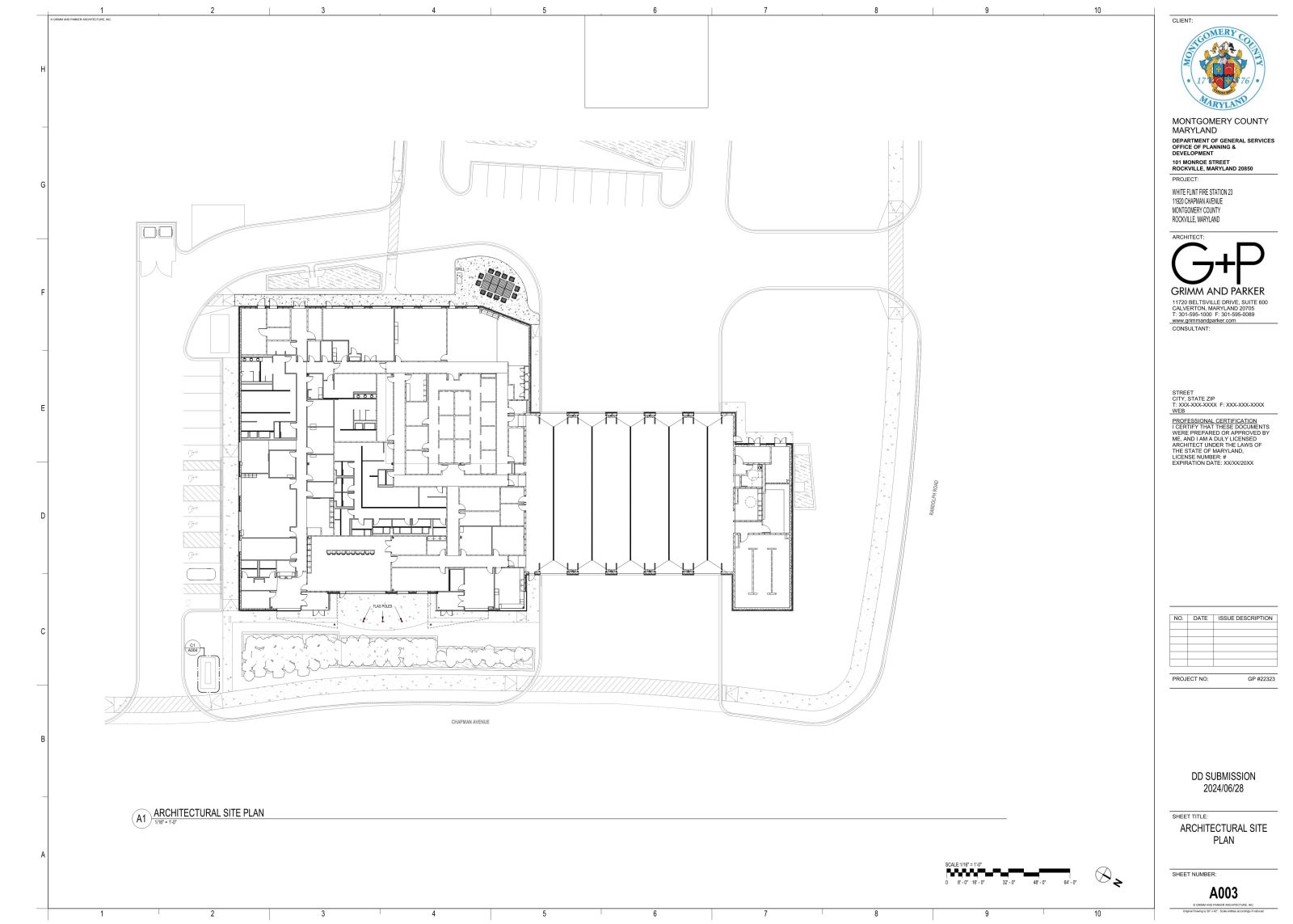 The project is currently in the construction documents phase. The new station will be constructed in accordance with the general square footage specifications of the prototype program. The building will be a one-story fire station with 5 bays located at the corner of Randolph Road and Chapman Avenue. The project will house fire and rescue and police functions. The project is required to meet IGCC requirements, and a net zero study will be done to look at the feasibility of making the building net zero.