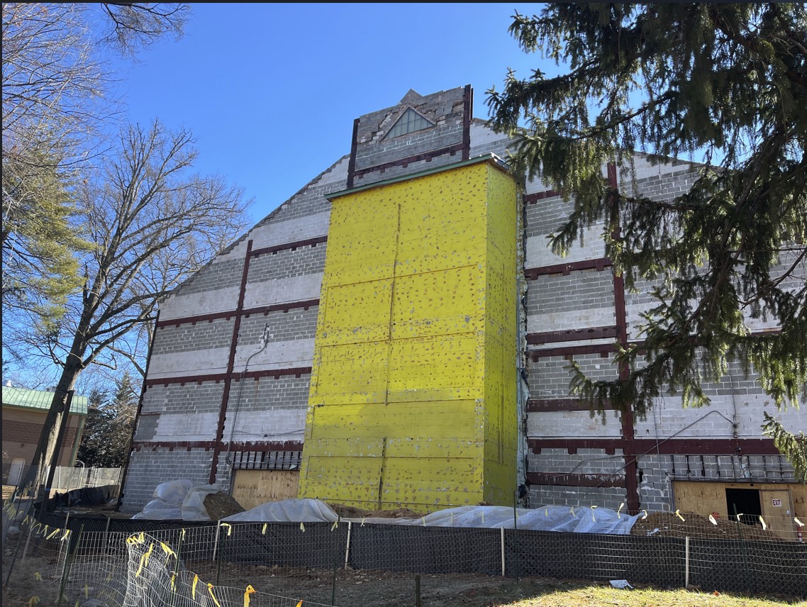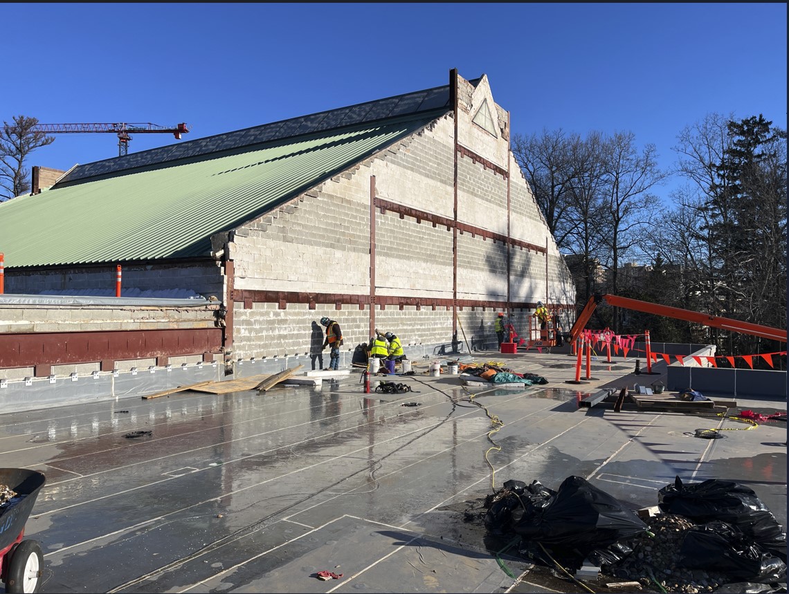 The Kennedy Shriver Aquatic Center opened in 1989. It consists of a 50 meter competitive swimming and diving pool, a 200 foot water flume, a separate leisure pool with two hydrotherapy areas, and a diving tower. Since its opening, the center has had problems related to the movement and condensation of moist indoor air through the building's exterior masonry walls, resulting in roof leakage throughout the building. The original scope of the project was to remove and restore existing windows and louvers; remove the 4-inch masonry veneer block throughout the facility, and correct louvers, windows, and penetration flashings; install spray-applied wall insulation functioning as both air/vapor barrier system; install new exterior masonry veneer wall system; and replace the existing roof.