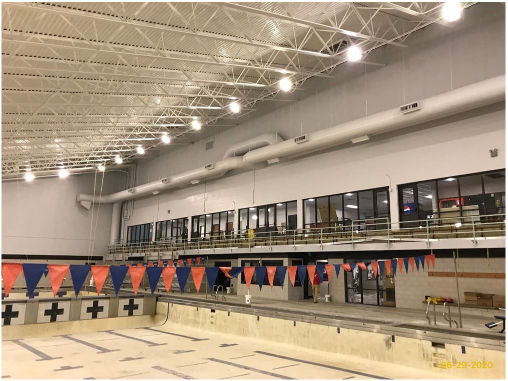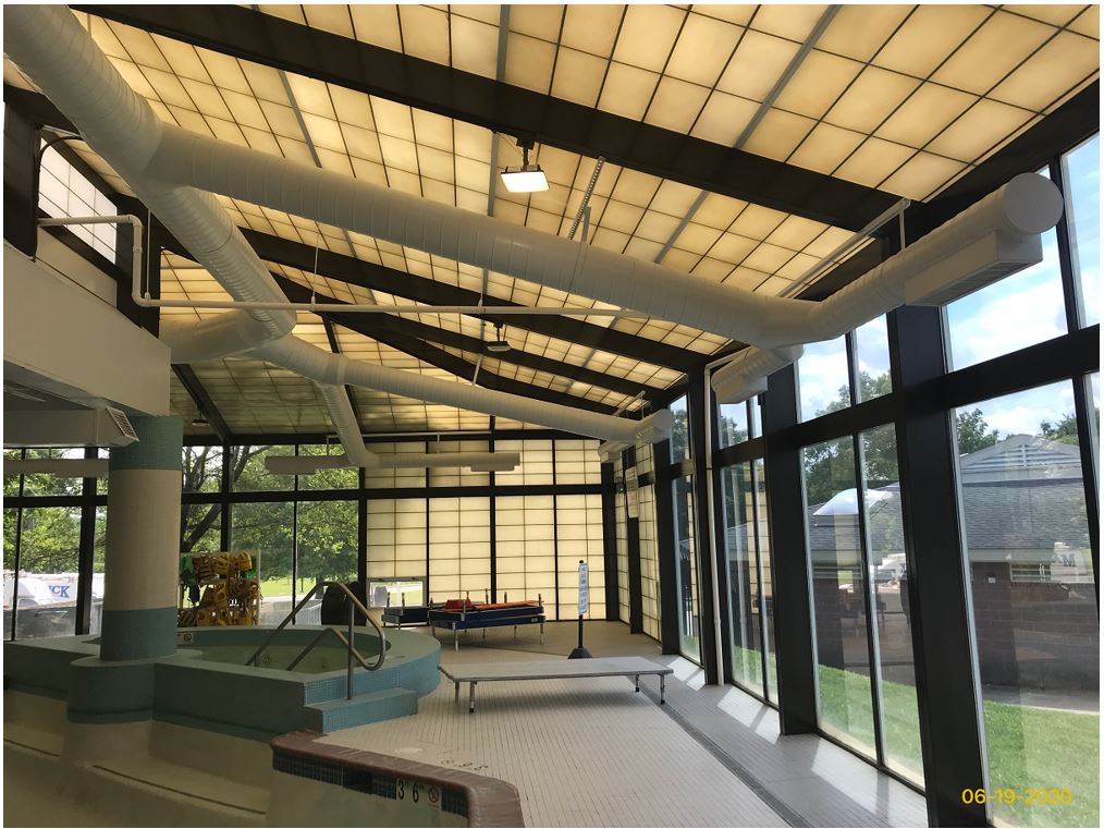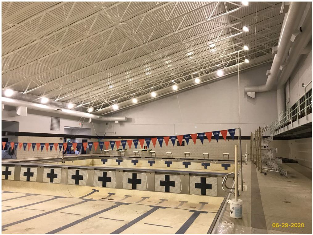 The main building that houses the two indoor pools of this 19,000 SF facility was closed during the summer of 2019 at which time dehumidification, air conditioning and pool filtering equipment as well as pool lighting were upgraded (as part of the energy savings-ESCO project).