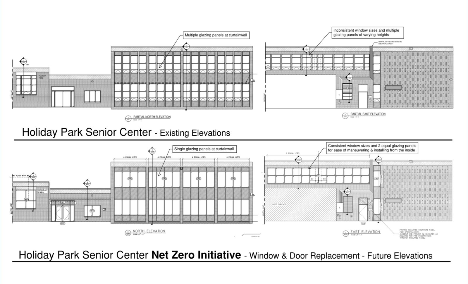 This project provides for the design and construction of an improved building facade which includes window and exterior door replacement for Holiday Park Senior Center. The purpose of this project is to improve life expectancy of the facility and to support the County’s 2035 goal of zero Green House Gas (GHC) emissions for the operation of the County facility.
