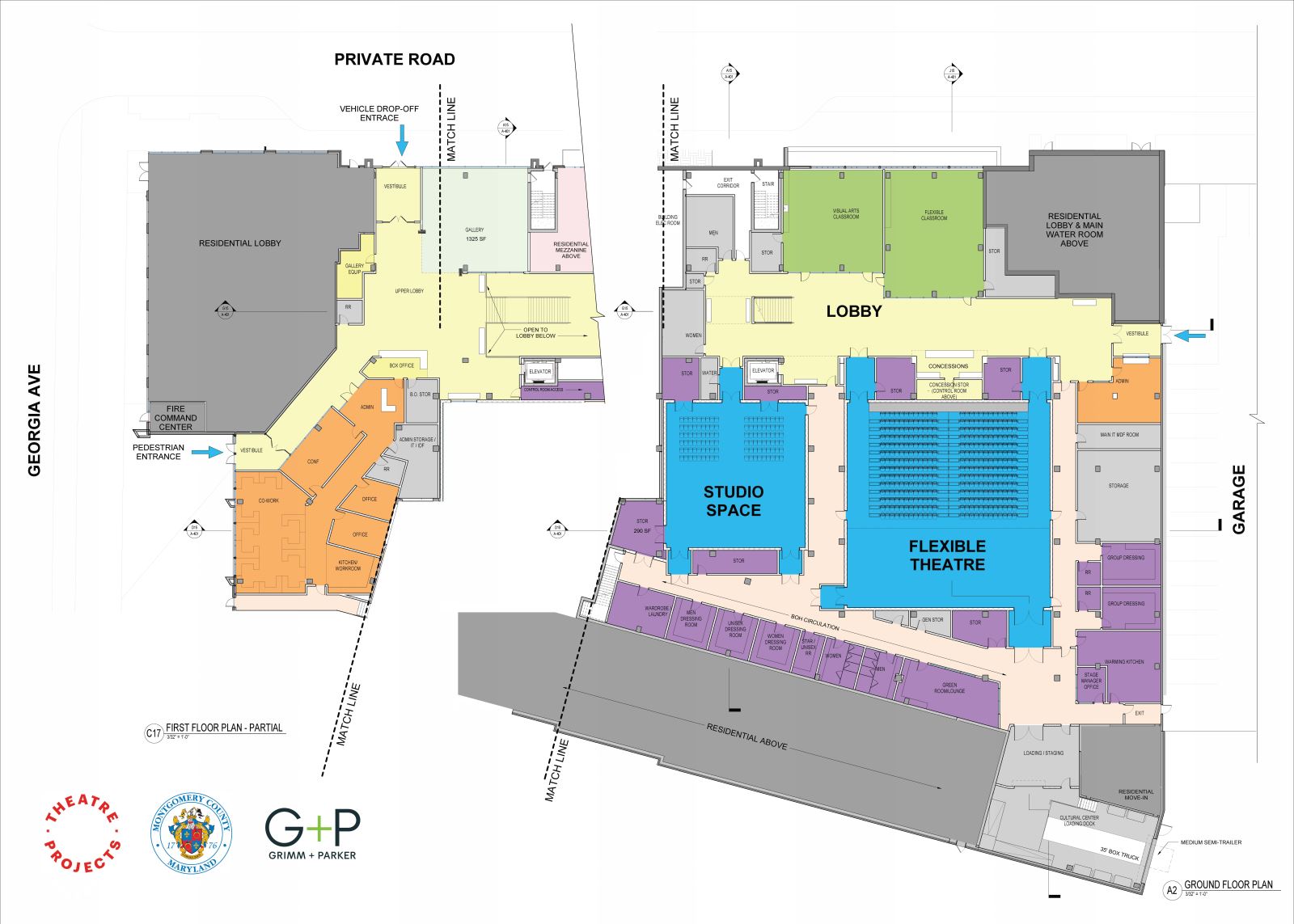 The County is co-locating a new arts and cultural center with an affordable housing development by Montgomery Housing Partnership (MHP) in the Wheaton Arts and Entertainment District. MHP will develop the former WMATA site with affordable rental and for sale housing units, as well as a parking garage. The arts center will be included on the ground floor of the multifamily building fronting on Georgia Avenue. The center will include two performance spaces, classrooms, gallery space, back of house support space, and administrative offices. More information about the arts center and the accompanying housing project will be posted to this webpage as it becomes available.