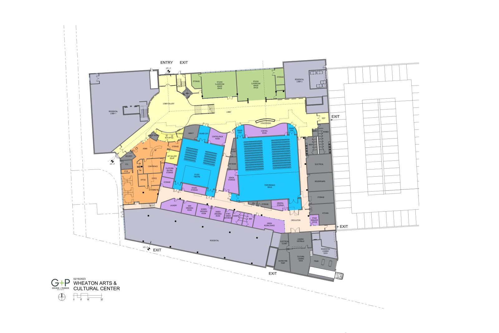 In February 2020, a Program of Requirements (POR) was completed. The POR includes detailed information about the specific space needs of the facility such as square footage and equipment requirements. The architect and a specialty theatre consultant used the 2019 facility planning reports as a basis for the POR. OPD worked throughout 2020-2022 test fitting the facility on various sites in the Wheaton Arts and Entertainment District, and updating stakeholders such as the Wheaton Urban District Advisory Committee.