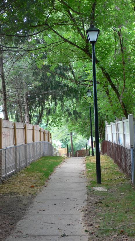 P1 – Provided new concrete path pavement for pathway, seeding or sod and pedestrian lights, Approximately 300 LF