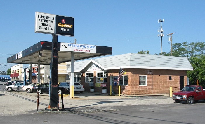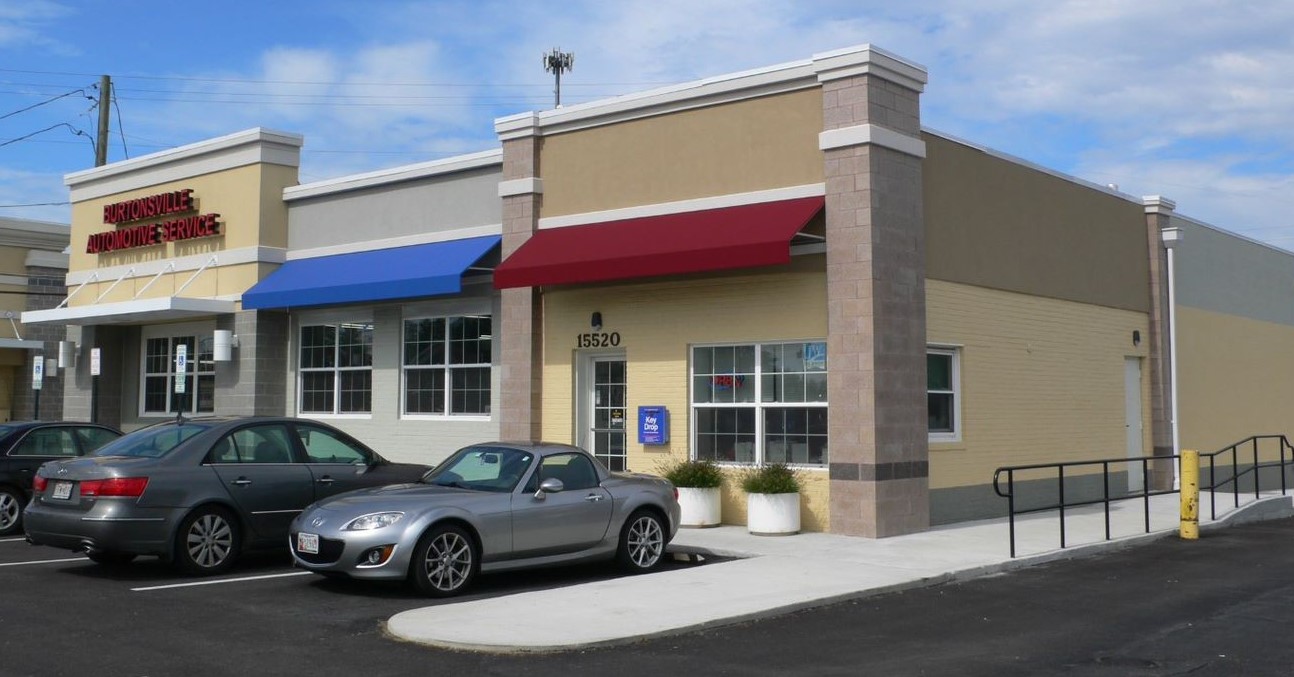 Long standing automotive repair shop with car lift visible from Old Columbia Pike. The project began with the demolition of the unsightly and deteriorated car lift in front of the building.