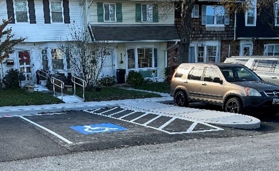 Above left: original street and parking area in front of a handicapped residence. Above right: newly installed and marked handicapped parking area.
