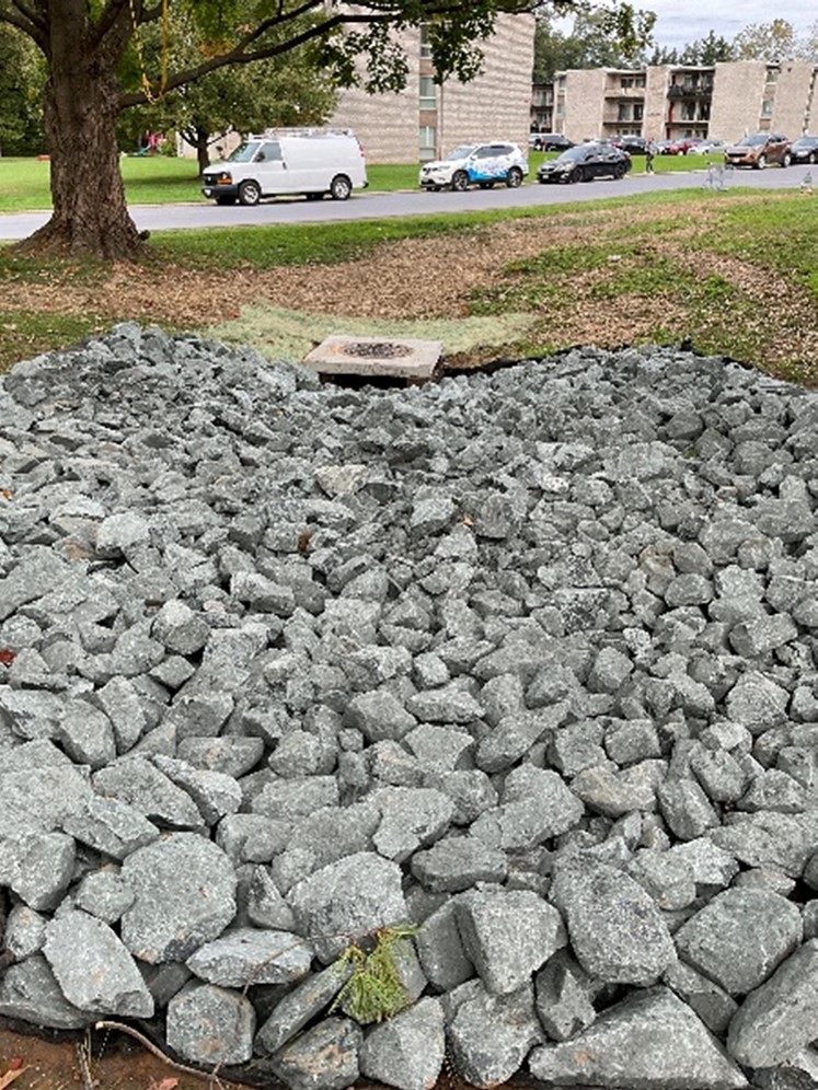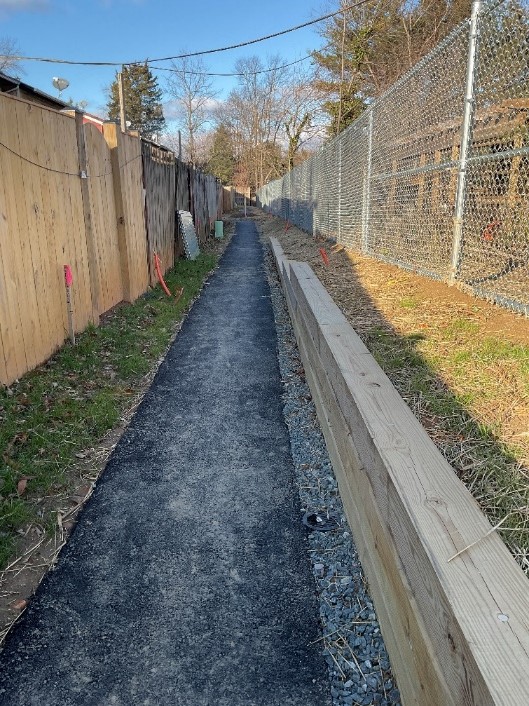 Located in Gaithersburg, the Wedgewood community consists of 80 townhomes built in 1976. A Visual Assessment Survey conducted by Neighborhood Revitalization staff confirmed the need for improvement projects to support a safer, more appealing community. In consultation with the HOA's Board of Directors, specific improvement projects were identified, including repairs to hazardous cracked and uneven community sidewalks, installation of a new handicapped parking space with striping, installation of new landscaping materials at targeted areas to deter trash dumping and loitering, installation of a new paved walking and access path for residents living along the eastern-most community property line, and targeted groundwater management solutions. The project was completed in mid-2024.