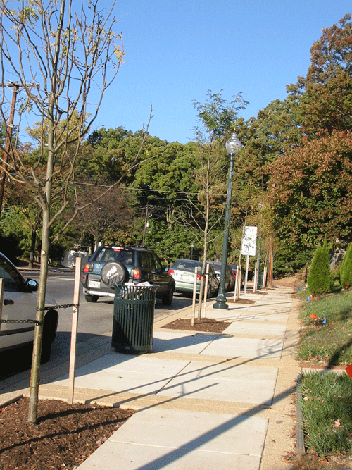 Arliss Street Streetscape Phase II continued the streetscape standard on the north side of Arliss Street from Walden Street to Piney Branch Road. Construction on this phase was completed in July 2011.