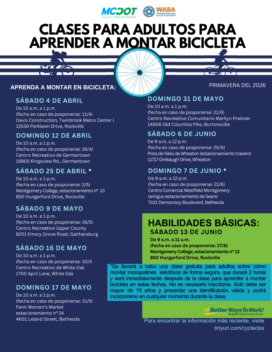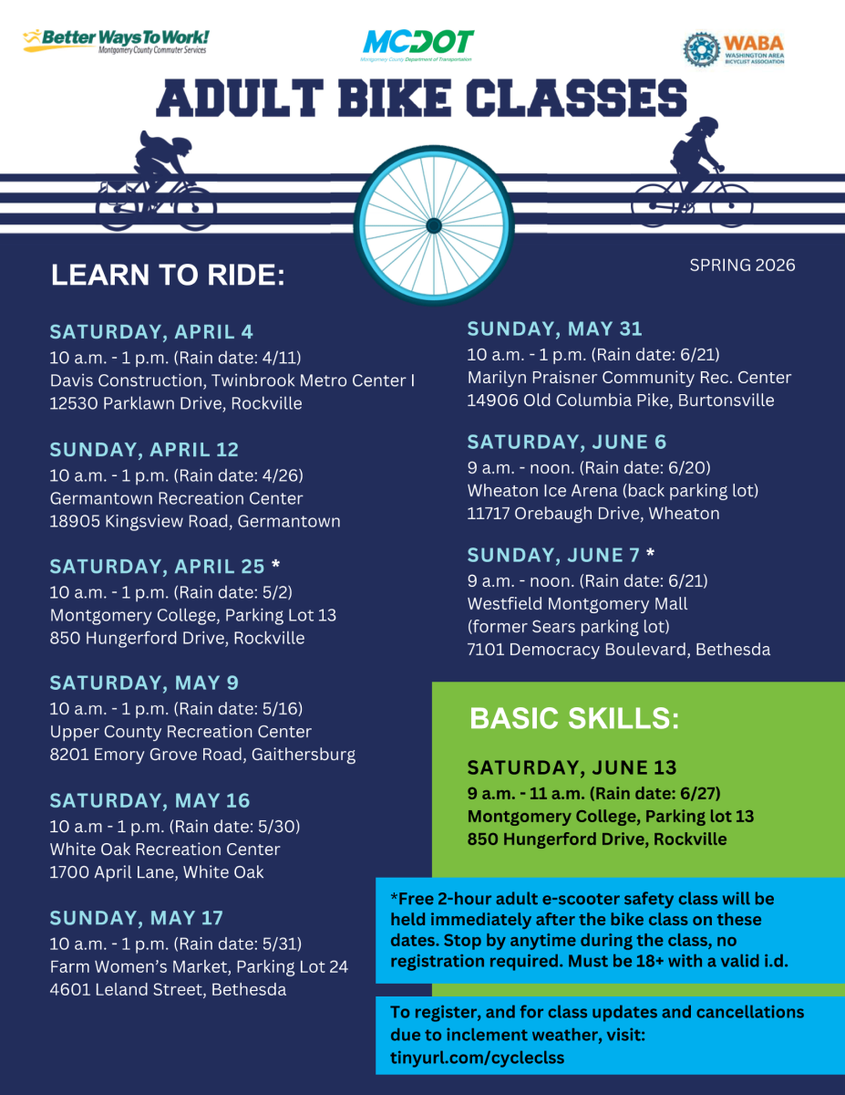 To register for the bike classes, visit: Classes « Washington Area Bicyclist Association