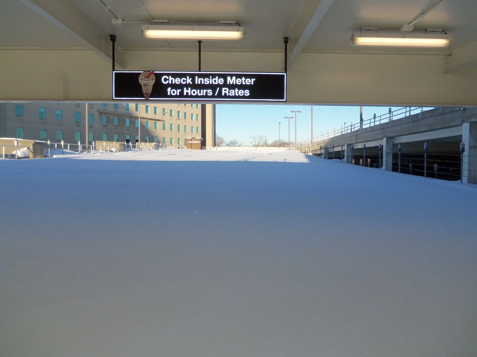 Parking is free in Garages and Lots during a declared snow emergency. Normal rates for on-street meters will still be in affect for non-snow emergency.