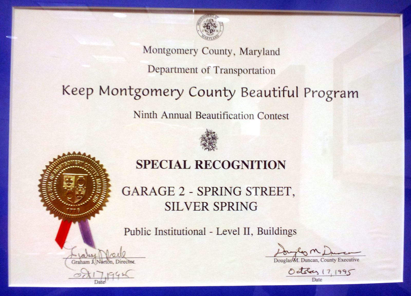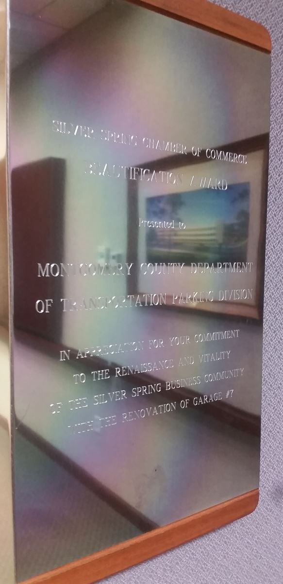 In appreciation of the Commitment to the Renaissance and Vitality of the Silver Spring Business Community with the Renovation of Garage #7