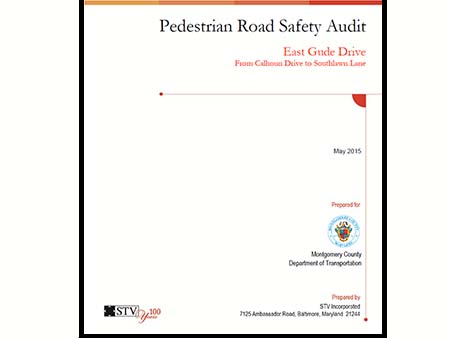 In May of 2014, the Montgomery County Department of Transportation (MCDOT) conducted a pedestrian road safety audit (PRSA) from Calhoun Drive to Southlawn Lane on East Gude Drive. MCDOT was part of a multidisciplinary team that included: Montgomery Department of Transportation –Traffic Engineering Division, Montgomery Department of Transportation – Division of Transit Services, Maryland State Highway Administration Office of Highway Development, City of Rockville, and Montgomery County Police Department.