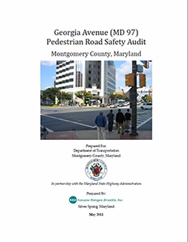 In March 2009, MCDOT conducted a Pedestrian Road Safety Audit (PRSA) along Georgia Avenue between Spring Street and Sligo Avenue in Silver Spring. This stretch of Georgia Avenue was identified as one of Montgomery County’s High Incidence Areas for pedestrian collisions, based on data from five consecutive years.