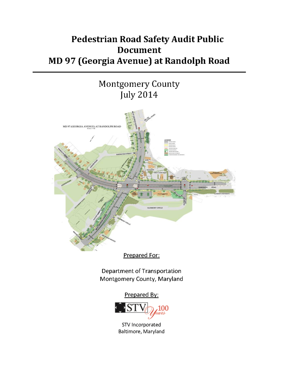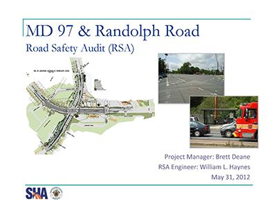 In the summer of 2012, Montgomery County performed a road safety audit (RSA) for the Maryland State Highway Administrations (SHA) future interchange located in Glenmont in Montgomery County Maryland. The SHA project was selected for an RSA due to the project area encompassing two of Montgomery County’s High Incident Areas (HIA) for pedestrian related crashes. The HIA segments include MD 97 from Glenallen Avenue to Mason Street and Randolph Road from Judson Road to Glenallen Avenue. The RSA allowed a unique opportunity to address concerns for accessibility and safety for pedestrians and bicyclists, along with the accommodation of efficient traffic operations during and after construction. The construction of the SHA project is anticipated to begin in spring 2014.