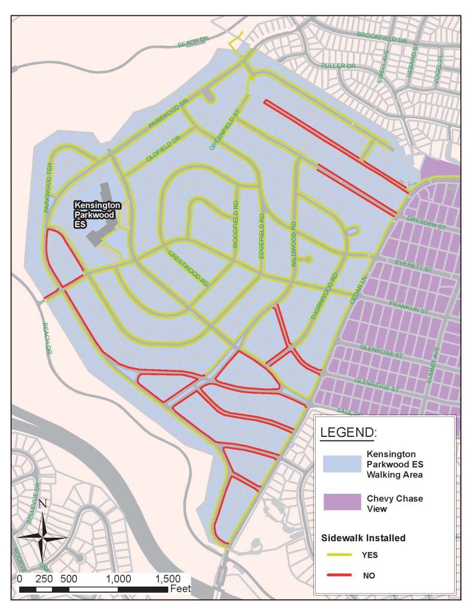 Montgomery County Department of Transportation (MCDOT) completed a walkability study for Kensington Parkwood Elementary School in 2019 as part of a countywide effort to identify safe and accessible routes for students walking and bicycling to school. The walkability study reviewed the condition of existing infrastructure and recommended improvements that may be implemented within the school walkshed to provide safe and accessible routes for students walking and biking to the school. Most of the improvements that could be implemented quickly, such as signing and marking, have been completed.