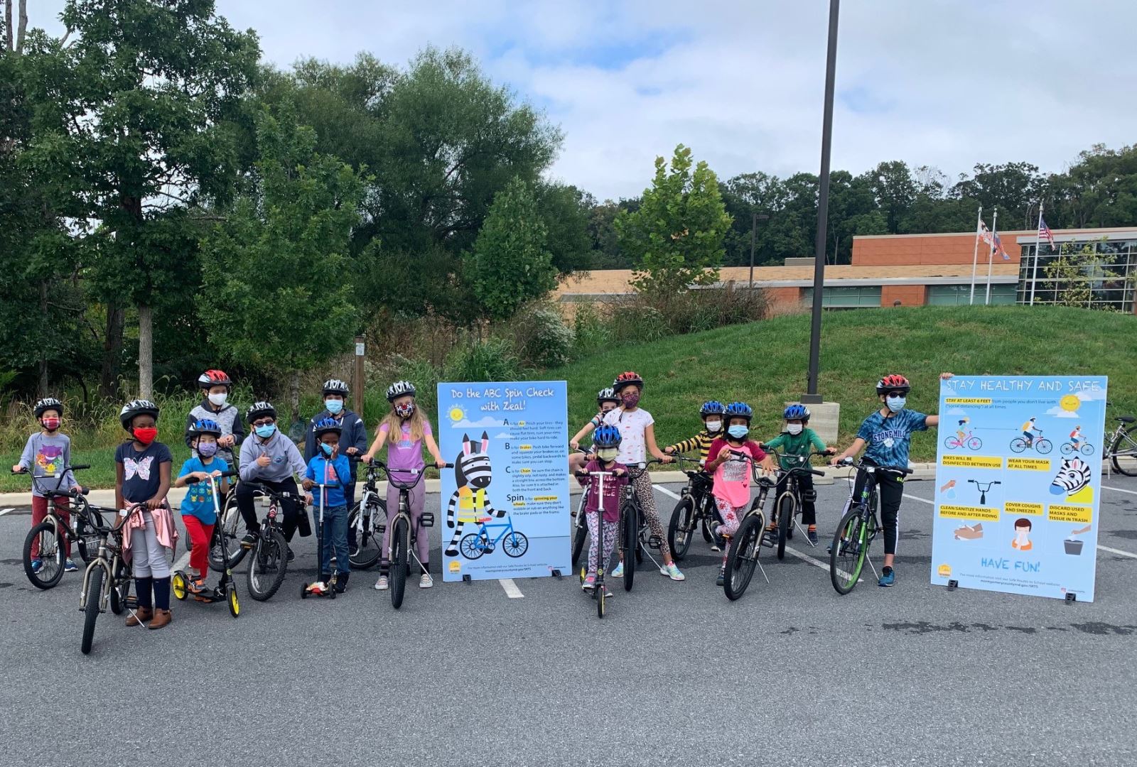 Safe Routes to School (SRTS) team conducted on-bike education were riders learned the bicycle ABC’s, Rules of the Road, Proper Helmet Fitting, and Communication with hand signals.