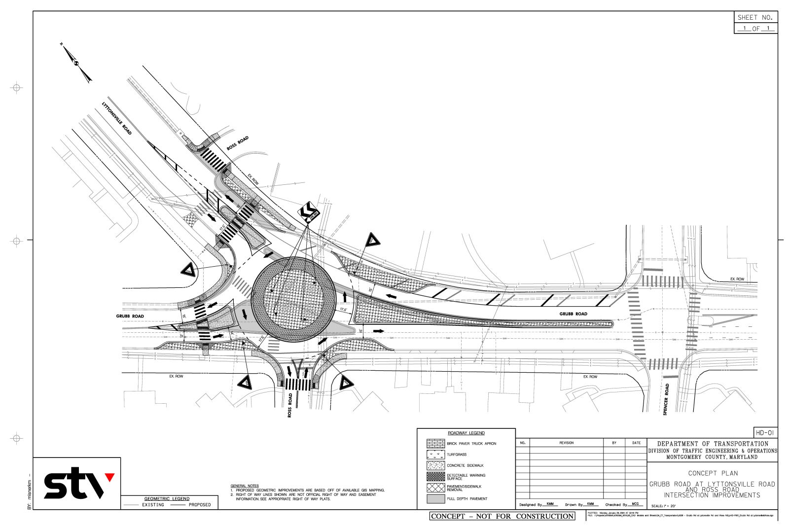 MCDOT held a community meeting on October 24, 2023 to discuss several improvements to Grubb Road and Spencer Road. From that meeting, community members requested that MCDOT consider the construction of a Roundabout at Lyttonsville Road/Grubb Road/Ross Road intersection. A concept plan was developed and can be viewed at the link below. Through February 28, 2025, MCDOT is requesting feedback from the community prior to considering whether to advance this concept to final design and construction. You are invited to submit any feedback, comments, or questions on this concept plan to [email protected].