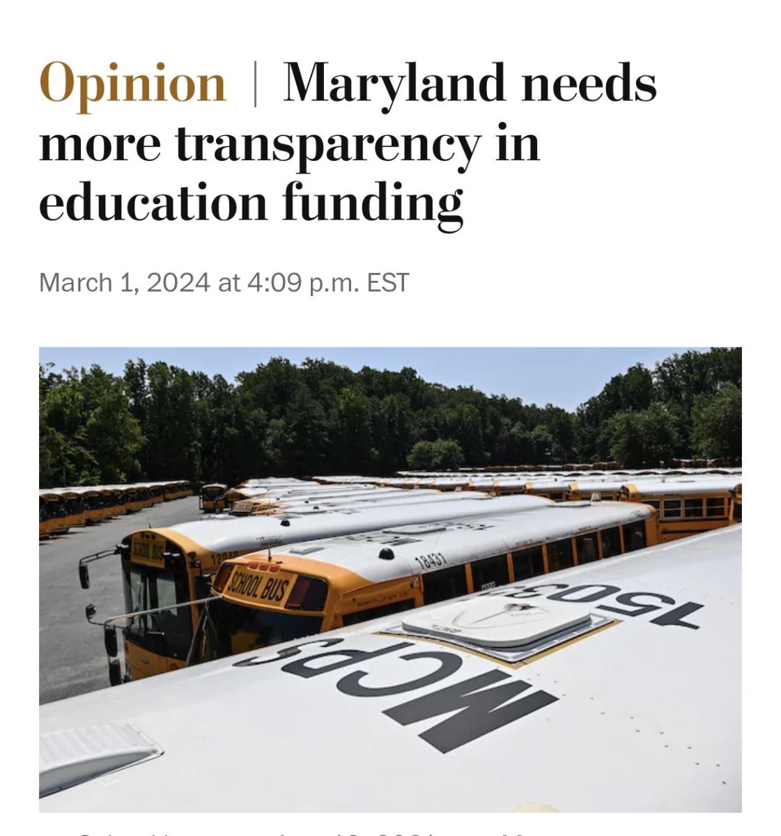 A medida que se acerca la temporada presupuestaria, le escribí una carta al Washington Post sobre la necesidad de una mayor transparencia en el presupuesto de $3,200 mil millones de las escuelas públicas del condado de Montgomery. En la actualidad existe una legislación en la Asamblea General que exigiría a todos los distritos escolares de Maryland que aporten mayores detalles sobre su presupuesto, en un esfuerzo para que los líderes de los condados comprendan mejor cómo se utilizan los fondos de nuestros contribuyentes.