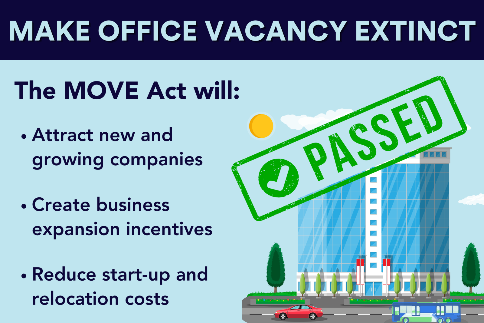 La ley M.O.V.E. incentiva a las empresas para que se relocalicen y crezcan en el Condado de Montgomery, lo que es bueno para nuestros restaurantes, tiendas y toda la economía local. Si bien el trabajo a distancia es excelente para algunas personas, sabemos que para muchas profesiones e industrias todavía es necesario tener un espacio de oficina.