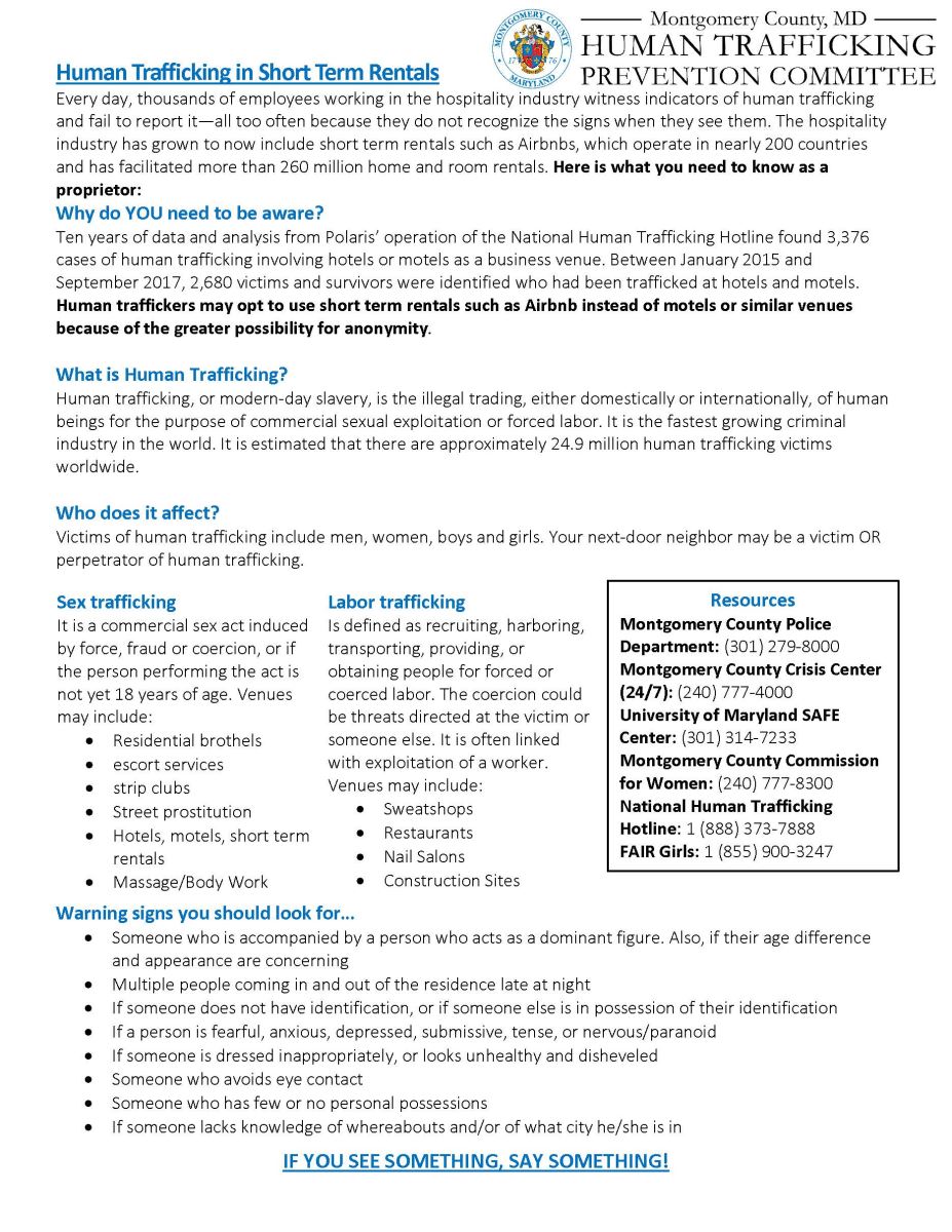 Montgomery County property owners who are renting out their homes (or a room within the home) for less than 30 consecutive days. Property owners cannot rent out accessory apartments or farm tenant dwellings as short -term rentals.