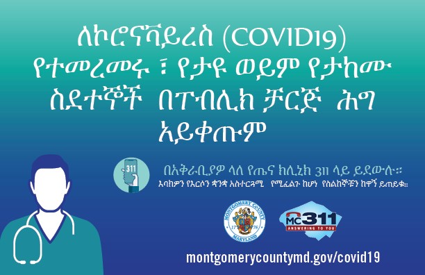 ማንኛም ሰው በኮቪድ-19 ሊታመም ይችላል። በሞንትጎመሪ ካውንቲ ካውንቲ በቾቪድ-19 የተጠቁት ብዙዎቹ መለስተኛና ልከኛ ምልክት ነው ያሳዩት።
