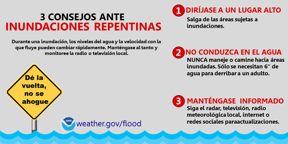 - Avoid areas already flooded, especially if the water is flowing fast. Do not attempt to cross flowing streams. Turn Around Don't Drown®!