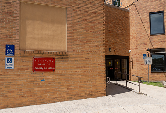 1. On E. Jefferson St. - Accessible entrance located on the first floor (in the rear of the building near the auditorium and loading zone).