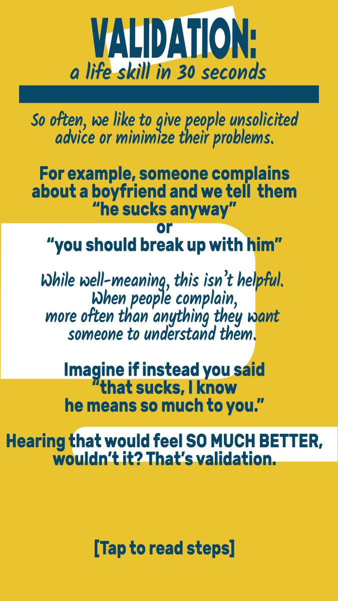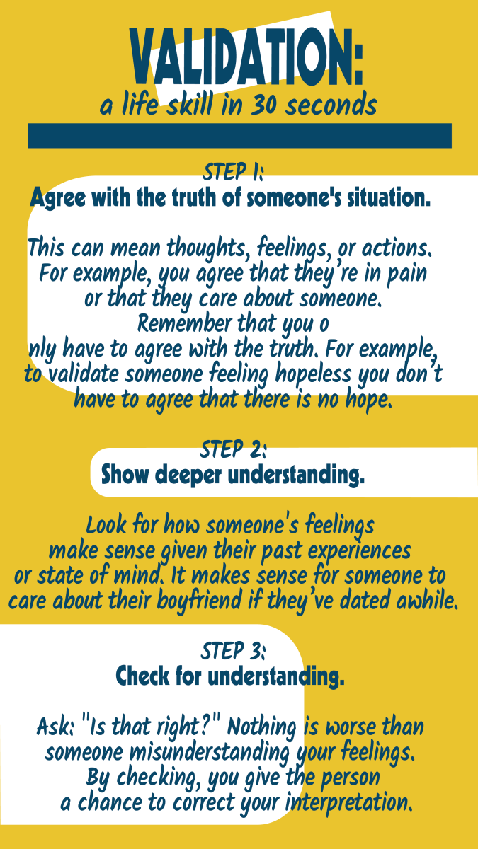 Hearing that would feel so much better, wouldn't it? That's validation.