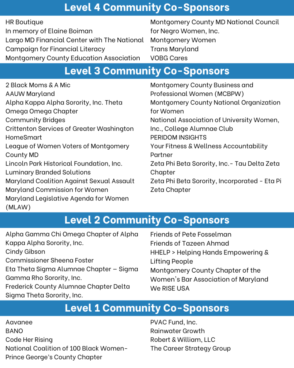 The Women’s Legislative Briefing is made possible each year through the generous support of our corporate, non-profit, and community co-sponsors. Sponsoring this event is a powerful opportunity to highlight your organization’s commitment to equity while helping to elevate and address the critical issues facing women and girls across Maryland.