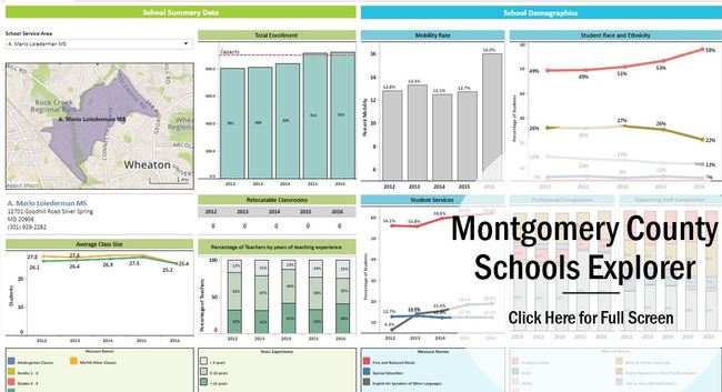 Explores trends in the numbers and characteristics of those Montgomery County residents living in poverty. Click the image to explore interactive graphs and maps that show the complexity of economic hardship in our County.Montgomery County Public Schools Explorer