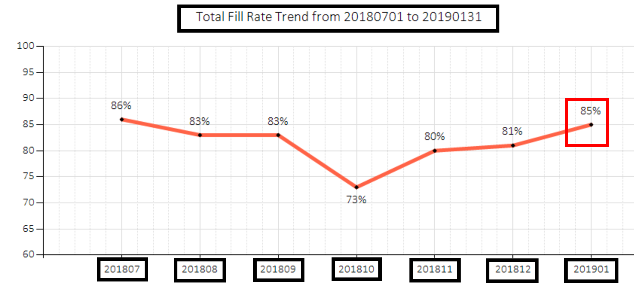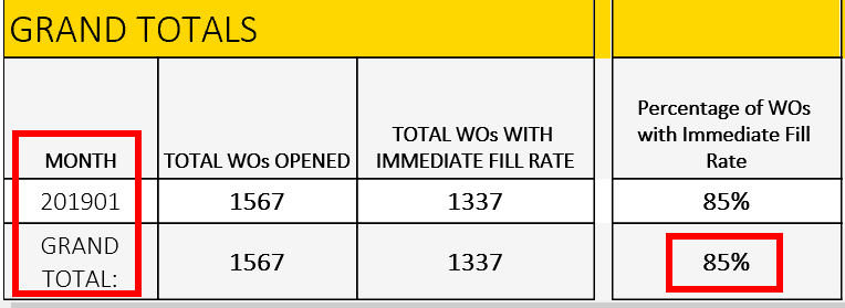IN THE MONTH OF JANUARY 2019, 85% OF WORK ORDERS WERE IMMEDIATELY FILLED BY THE PARTS DEPARTMENT