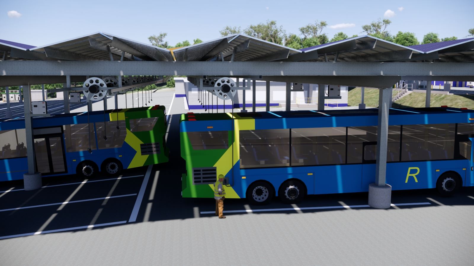 The Montgomery County Department of General Services, Office of Energy and Sustainability is developing a microgrid at the Brookville Bus Depot that will support the electrical charging requirements of this new fleet. As with many transit systems, the Ride On system serves a population that does not have reliable access to personal transportation and is reliant on the transit system to travel to and from their work. Having a microgrid supporting the charging of electric buses, provides an improved confidence that during major climate events and grid outages, the electric bus fleet will continue to service their routes.
