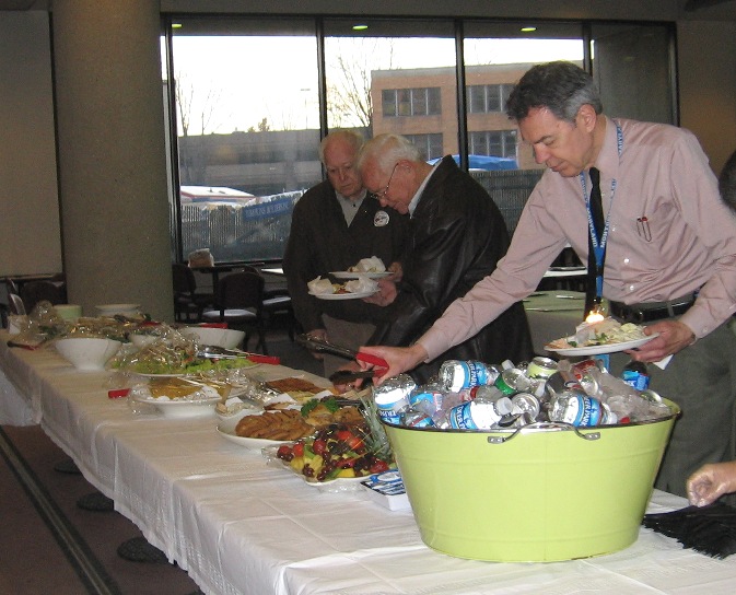 Light dinner was served (assotrment of sandwiches, two types of pastas, soda, water and coffee, at tray of fruit and cookies).