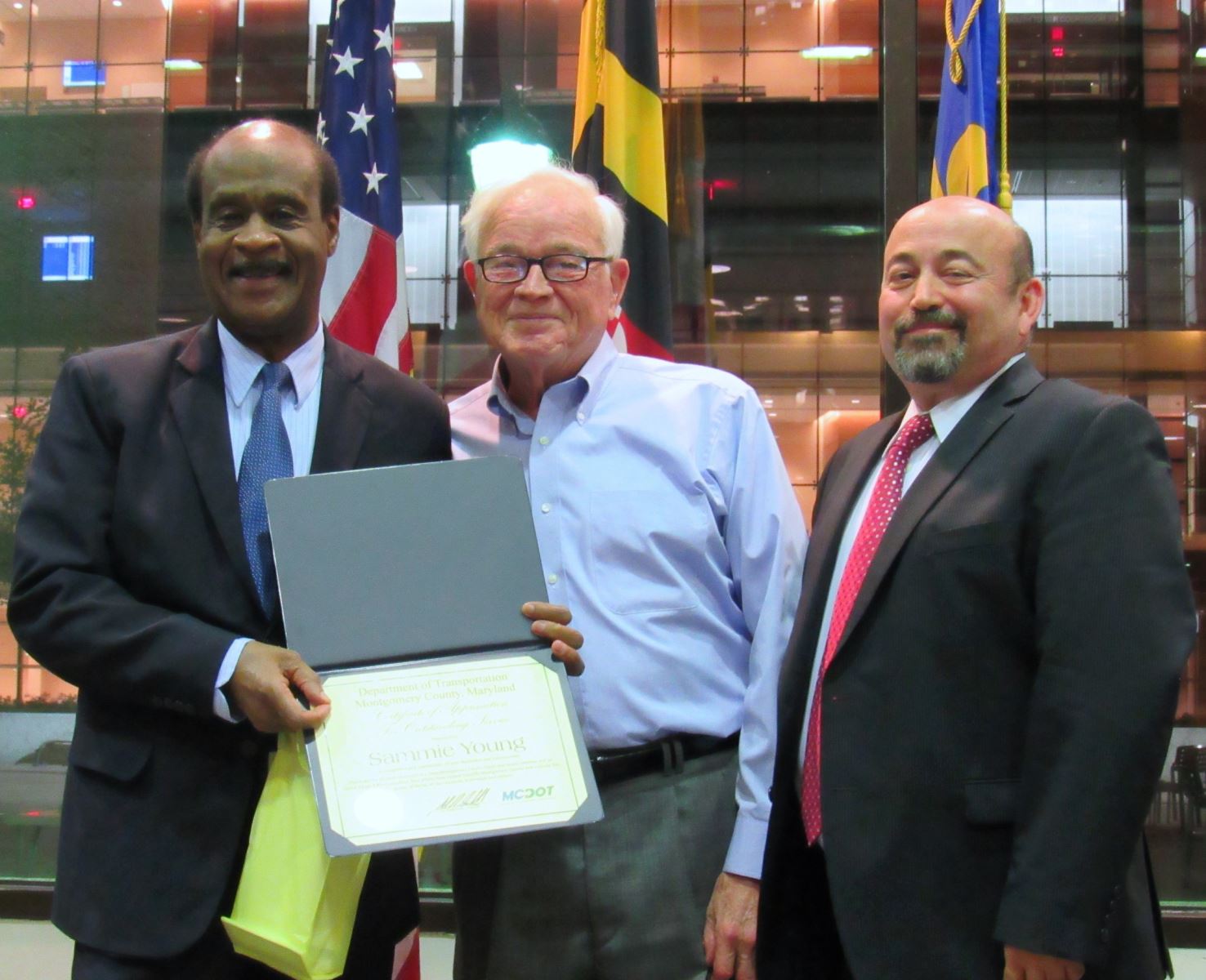 A special award was presented to Sammie Young, an active AAR and KMCCG member for more than 25 years. The award, presented by County Executive Ike Leggett and MCDOT Director Al Roshdieh, recognized Mr. Young’s exceptional service, dedication and commitment.