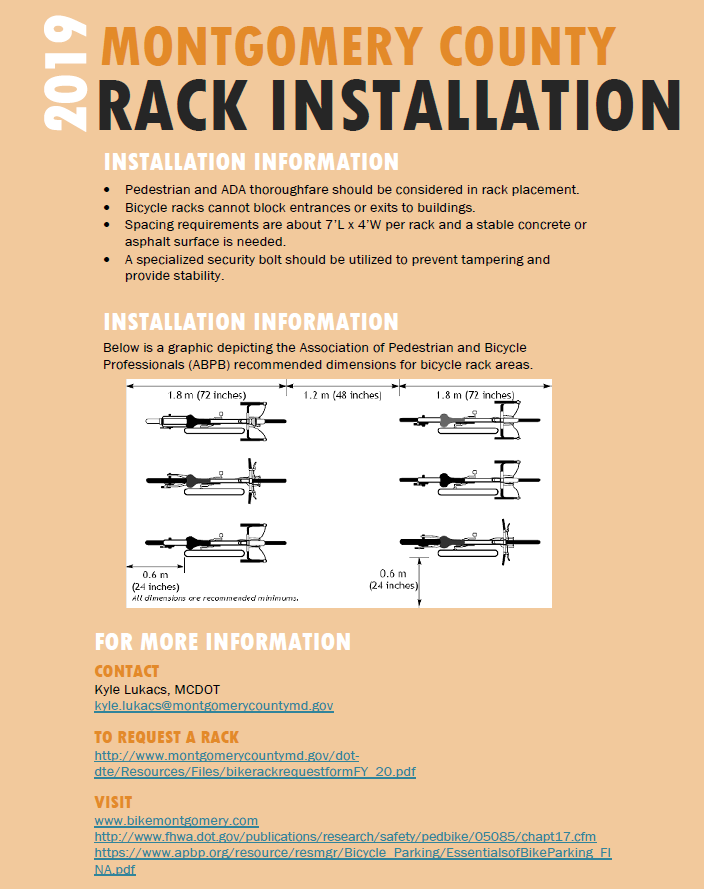The Montgomery County Department of Transportation (MCDOT) Division of Transportation Engineering (DTE) has the responsibility to plan and construct bikeways. The MCDOT is responsible for maintenance of bike paths on State roads as well. All bikeways constructed by MCDOT comply with Federal Law under the Americans with Disabilities Act.