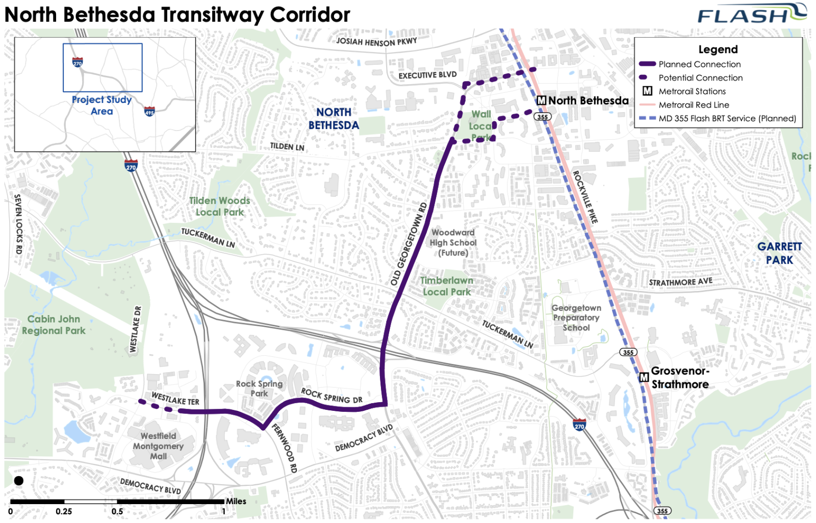 This planning study will determine the configuration, stations and termini of the North Bethesda BRT.