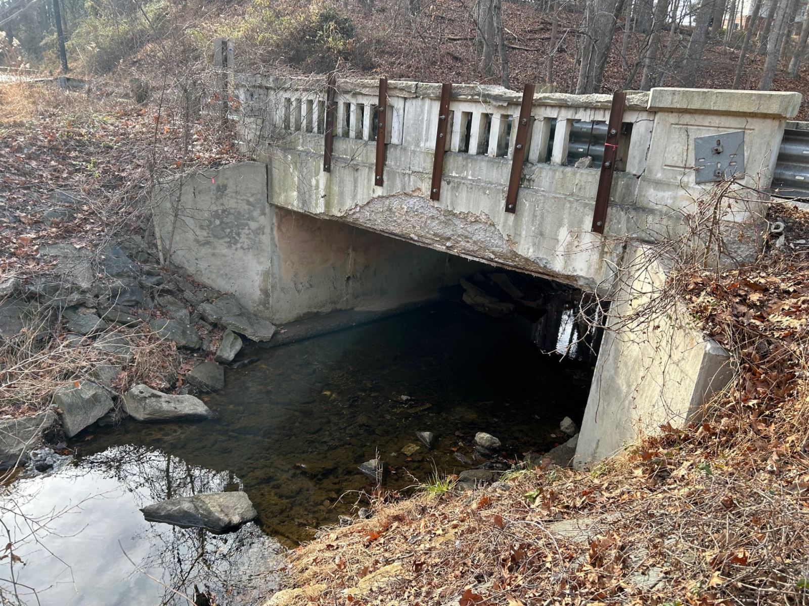 The project is located in Derwood, Maryland. A two-lane bridge between Briardale Road and Overhill Road carrying Redland Road over Mill Creek. This Project will begin with the relocation of an existing 16” WSSC Water Service and an 8” WSSC Sewer main. That work will be followed by a roadway closure and the removal of the existing concrete bridge. A 12” casing pipe for a proposed 8” steel Washington Gas service line will be installed prior to constructing the new larger 48’-0” wide concrete Bridge. The existing roadway will be milled and resurfaced with full depth pavement reconstruction as the new bridge approaches. New guardrail and posts will be installed with new end treatments. Combination curb and gutter will be constructed along roadway as well as a new storm drainpipe and inlet structure. In-Stream Restoration work of Mill Creek will also be done along with new landscaping and roadway signage.