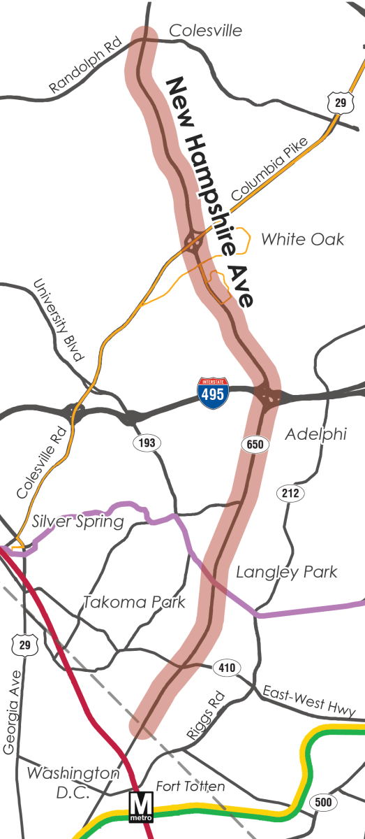 The Montgomery County Department of Transportation (MCDOT) is advancing BRT for the New Hampshire Avenue corridor consistent with the 2013 Countywide Transit Corridors Functional Master Plan. Flash will provide high quality transit service that improves the speed and reliability of bus service in the corridor.