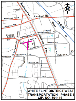 This project provides for 100% plans, specifications & estimate and construction for the extension of of Main/Market Street to Executive Boulevard Extended The construction of the project is an extension of Phase 1 and will re-route traffic from Executive Boulevard to Banneker Dr. This portion consists of a new road alignment, Curb and Gutter and Underground Utility Upgrades as well as Lighting and Signal replacements.
