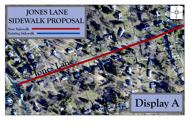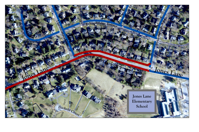 Under the Jones Lane Sidewalk Project, the installation of 5-foot-wide, ADA-compliant, concrete sidewalks along the following sections of Jones Lane was proposed to residents in this Darnestown community.